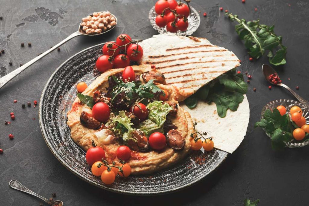 Toast a slice of wholemeal bread, spread smashed avocado and add a hard- or soft-boiled egg, sliced. Sprinkle some salt, pepper and a squeeze of lemon. It’s simple, quick and very tasty! - Wrap with hummus and vegetables: