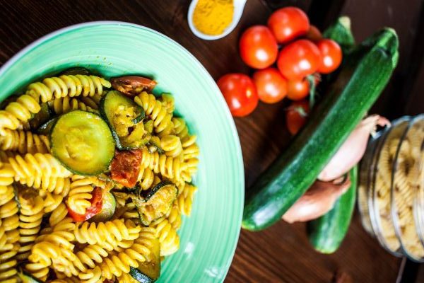4. Pasta with vegetables and pesto